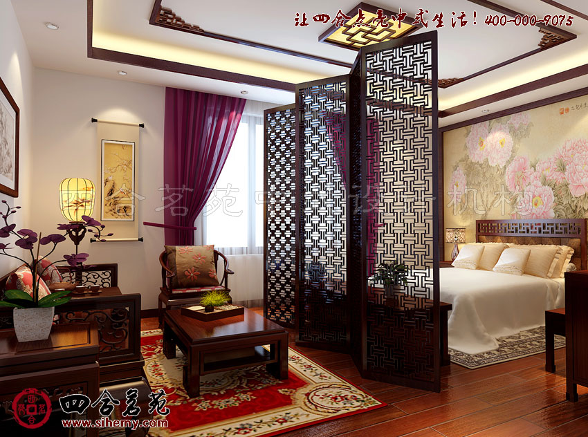 臥室在中式古典別墅臥室設計里,中始終具有迥然不同的設計感的空間,考慮到功能性,圍合相對私密,較好的保證了主人的隱私,而溫馨的主題也選取最能表現古典文蘊的主題以舒緩的節奏掌控全局,帶來舒適的臥室居住享受。