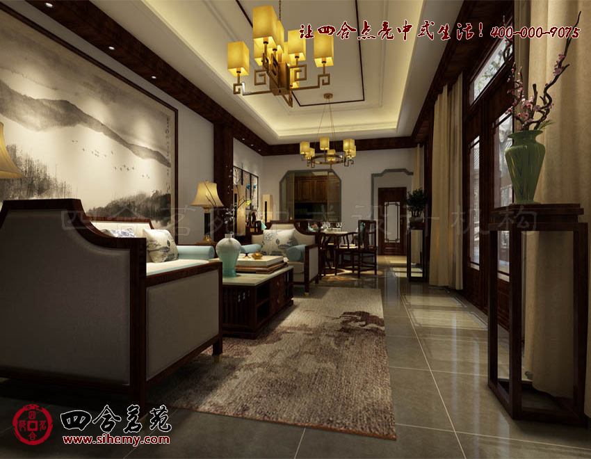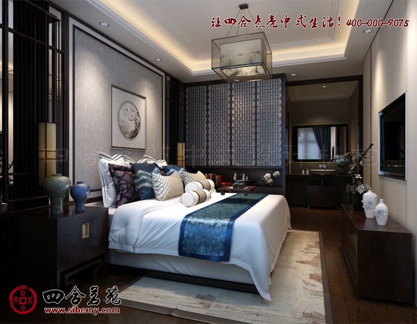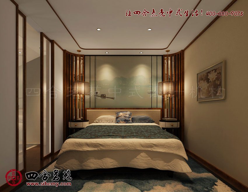 墻面上無論中式題材水墨,還是富有禪意的壁畫組圖,從色彩線條豐富設計感。