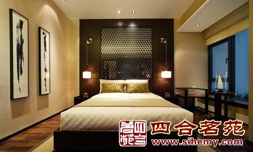 臥室主題仍以清心安靜為主旨,體現私密性同時又簡約時尚,中式元素的安排也讓房間古色古香。