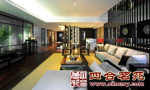 設計師希望業主能在空間中感受到時間的沉淀,在用色上以黑白灰為主,中式元素也多帶有禪意風,增加了空間的寧靜感。木格柵的設計讓空間隔而不斷,光線透過那條條排列的木柵欄反而營造出一種光影交錯的秩序之美。
