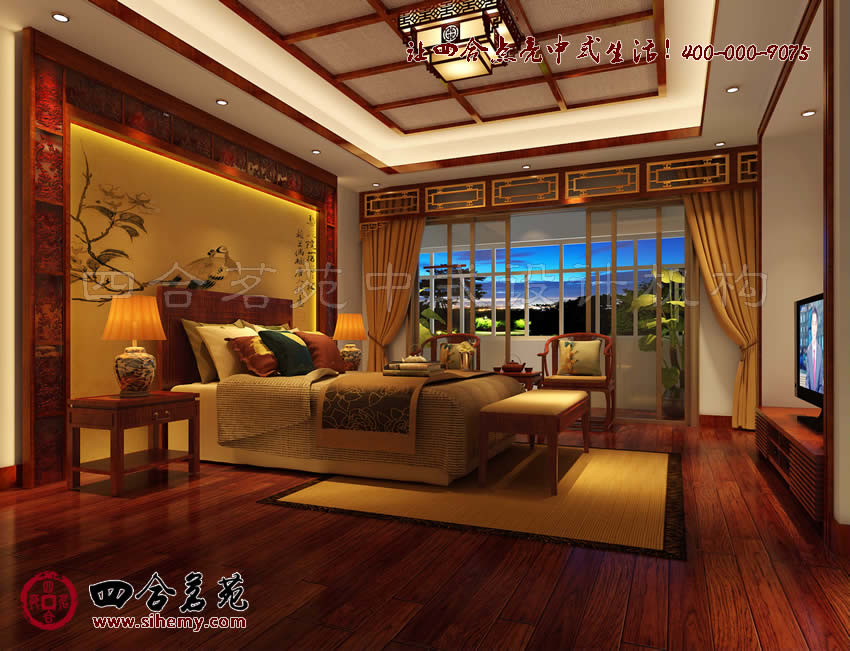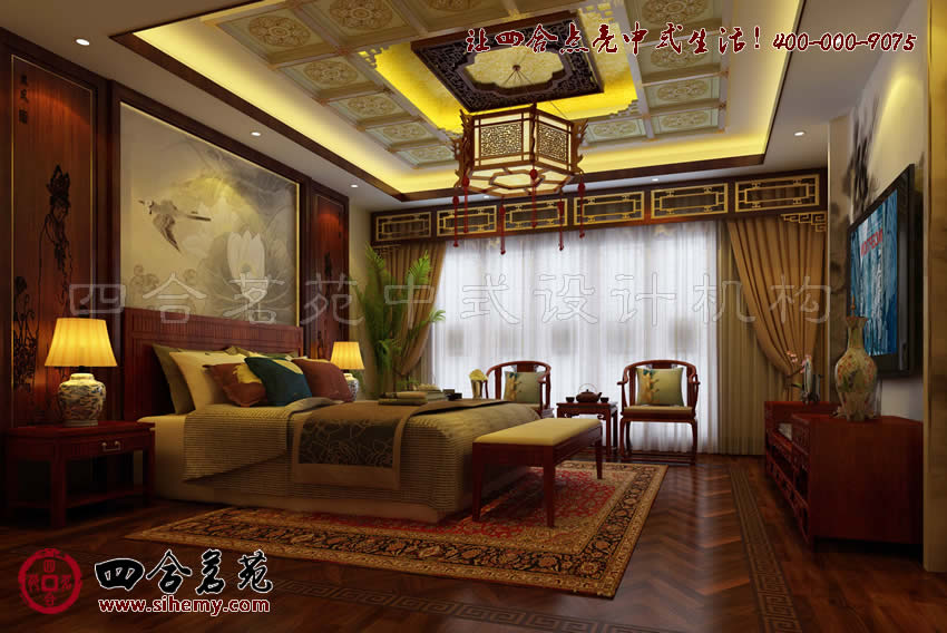 古典別墅設(shè)計(jì)中運(yùn)用更多中式元素,展現(xiàn)典雅的同時(shí)也突出古典元素的文脈,和養(yǎng)生功能,淡雅而舒緩的裝飾節(jié)奏,在四合茗苑設(shè)計(jì)師強(qiáng)大的統(tǒng)馭能力下,變得有張有弛,讓臥室中的氛圍變得舒適溫馨而自然恬淡。
