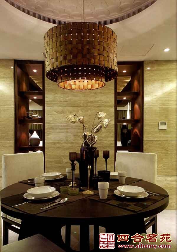 中國(guó)人講究吃,中國(guó)封建時(shí)期曾經(jīng)濟(jì)繁榮一時(shí),有條件去講究,也由此誕生了獨(dú)特的中國(guó)飲食文化。中國(guó)是共食制,所以采用圓桌。而真正的吃客對(duì)于美食是來(lái)者不拒的,所以西式的餐具也不能少。餐桌上竹篾編制的吊燈有一種自然的野趣,而中國(guó)自古就多有用竹制餐具的傳統(tǒng),“別有用心”的設(shè)計(jì)搭配美食,似乎可讓人食欲大增。