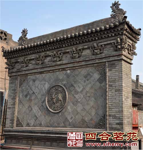 北京四合院是傳統合院民居形式的代表之一,四周圍合的院落,橫交錯的房舍布局,院落和廳堂的組合模式體現了民居空間組織的核心, 陰陽互動的思想觀念極為深刻,可視作研究傳統民居陰陽關系的范例。在四合院的 民居中,影壁的形式較多樣。有建在宅院大門兩側的八字影壁,有建在大門外街對面的跨街影壁,或大門外河對面的跨河影壁。另外還有立于院落內的獨立影壁,可 以增加大門的氣勢,給進出大門的人以整齊美觀感。即使門內的空間不富裕,人們也可以 在對門的廂房山墻上作跨山影壁。這是北京四合院,也是北方晉中平遙-帶民居影壁的常用類型。