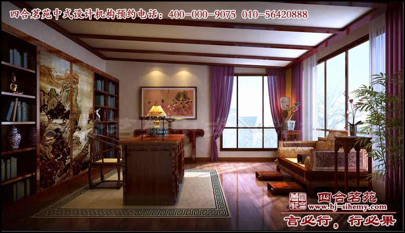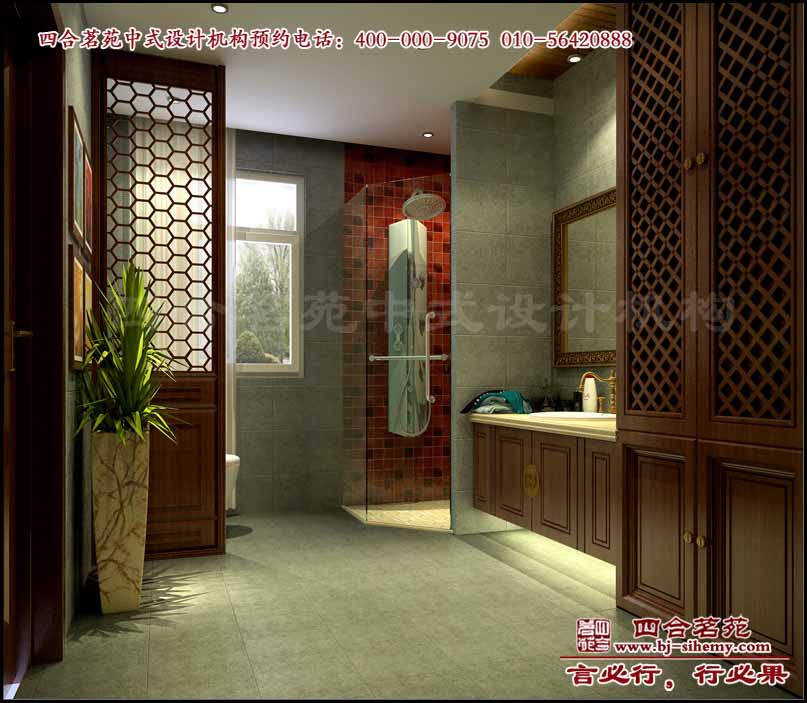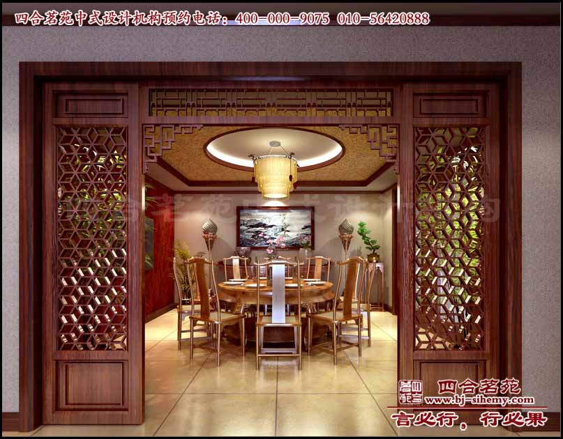 - 綠植花藝的精巧點綴,讓此案中式 <a href="http://http://www.dayeupk.cn/">別墅裝修設計</a>清香四溢,雅韻卓然。戶主對自己及家人未來別墅生活的期冀,成為四合茗苑的設計師在此例中式別墅設計方案中的設計主線。 吊燈上的中式鏤空花格,電視背景墻上的花木復古畫風,都將此間別墅裝修古典中式的設計主題,通過清透亮麗的設計筆觸,將該中式別墅設計方案最完美的一面,展現于戶主面前。