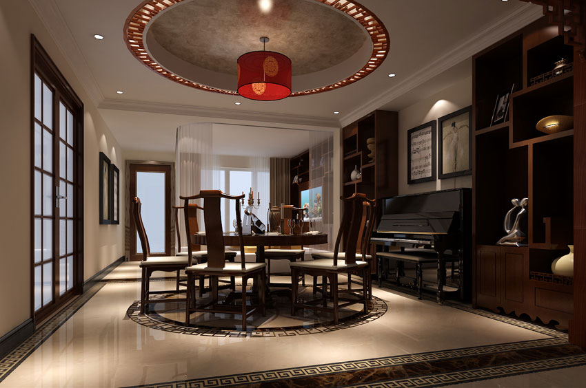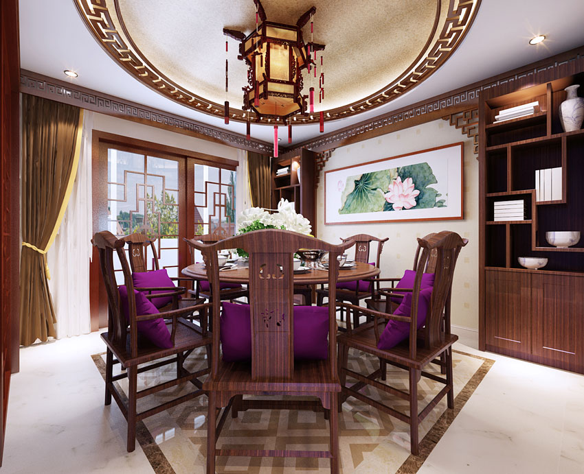 獨特的中式別墅餐廳設計效果圖