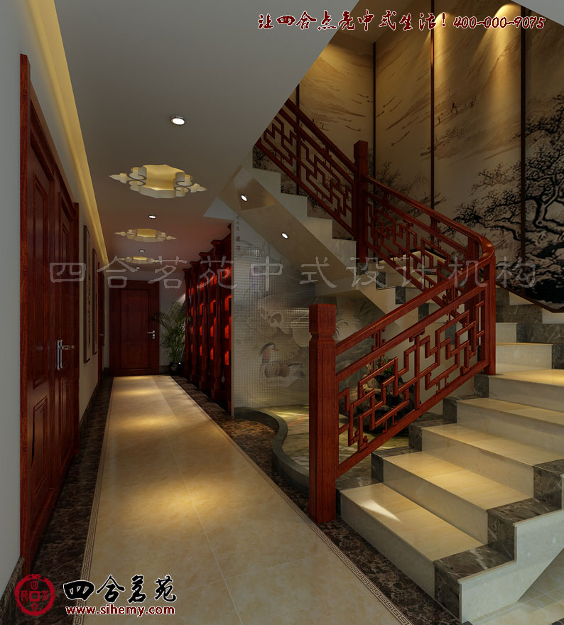 現代中式風格別墅樓梯間設計