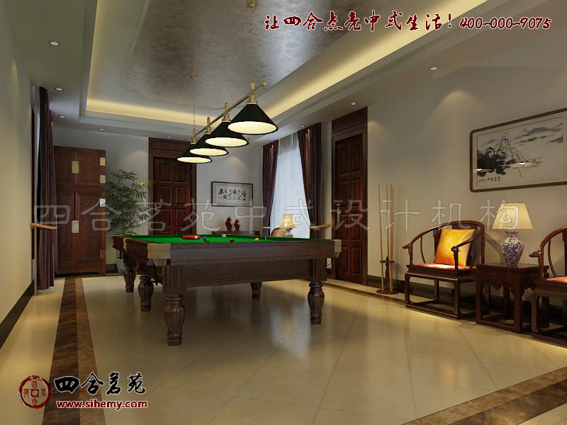 在別墅多空間中,根據個性化選擇裝飾主題,根據家庭成員興趣愛好的多樣化展開多元化設計,中式裝修,巧妙融入西洋娛樂,給別墅增添幾許趣味性。