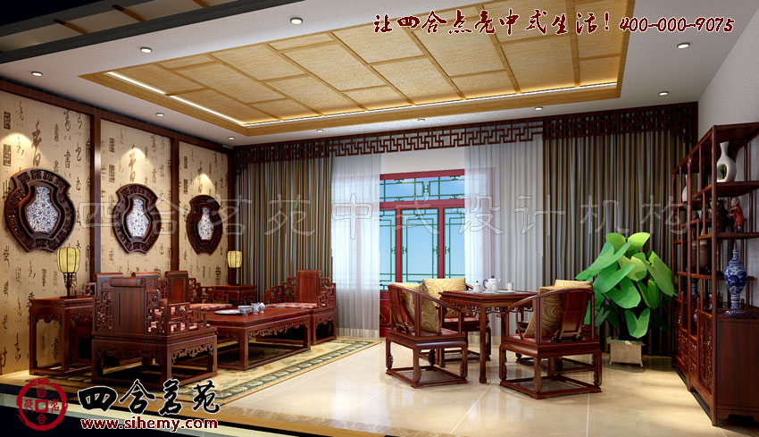 別墅設計平面圖中展現出濃郁的文化韻味,與書香文蘊的裝飾筆觸,高端別墅裝修透過古典藝術雋永筆觸營造別具魅力的室內文化中式底蘊。