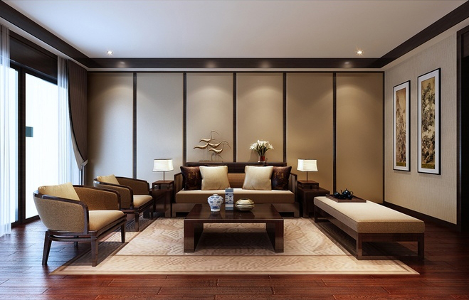 本案中式設計別墅采用了清新與優雅的思路,著重于人文氣息的營造。用現代的設計語言來來詮釋一種東方禪意,是本案的重點所在。禪是一種基于“靜”的行為,源于人類本能。它如今也是室內設計追求的一種境界,設計師們希望從此中汲取藝術靈感,體悟“靜”的神髓,在方寸間打造出一種空靈和澄澈的氛圍。
