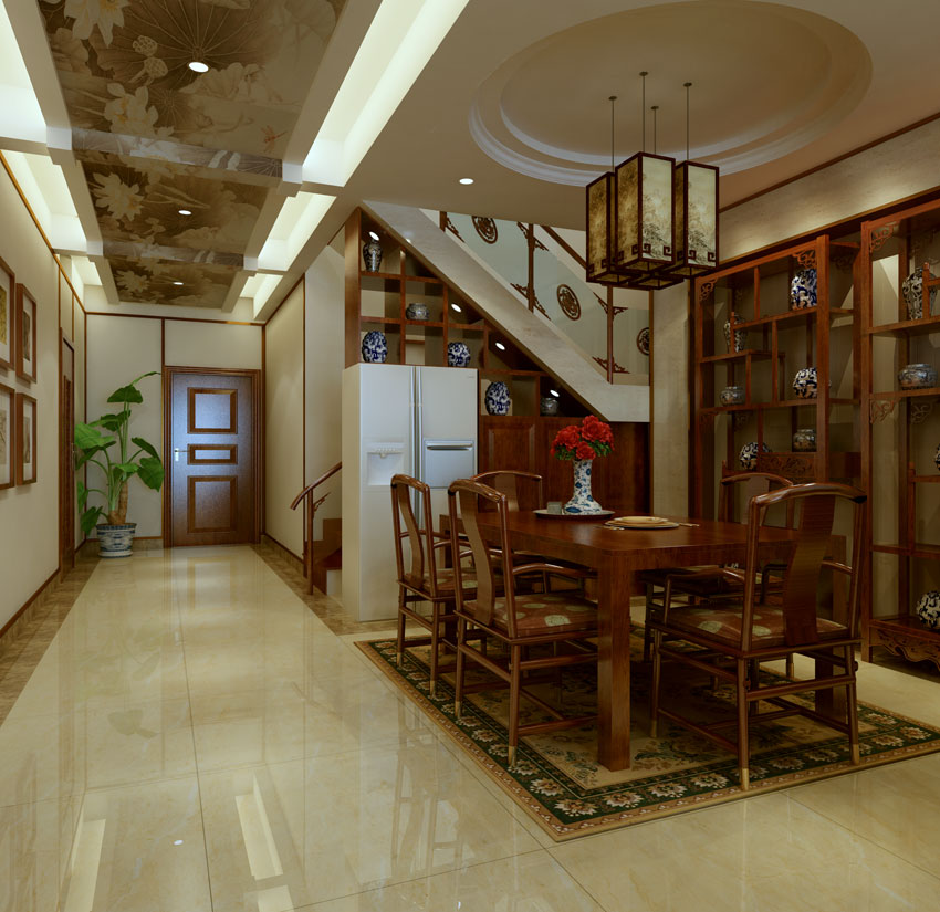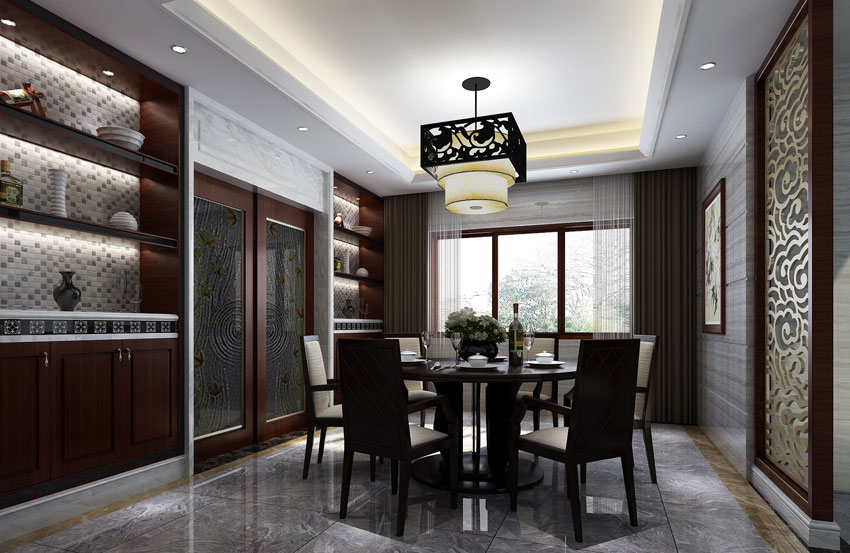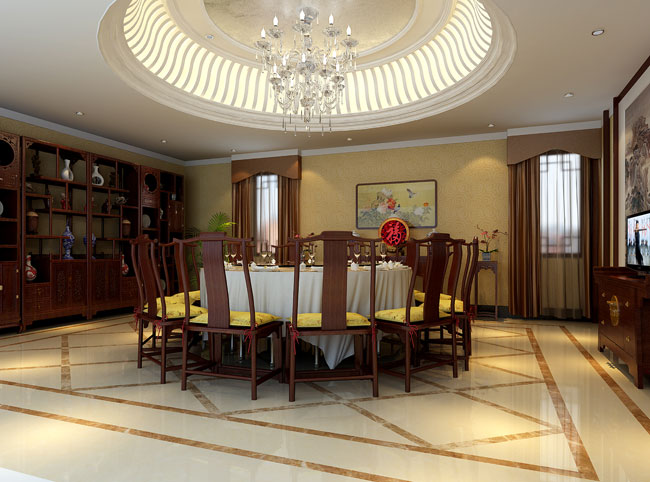 獨棟別墅設計空間突出的中式筆觸,增強了空間的審美,在別墅設計中,發揮優勢,緊扣時代脈搏,擷取古典元素中經典的中式設計部分。構成精巧合宜,符合功能以及主題的別墅裝飾環境,從審美視覺上滿足人們的享受需要。