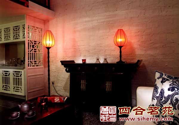 紅色的落地?zé)魹榭蛷d增添了些許浪漫的氣氛
