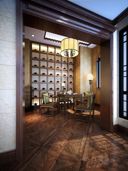 ◆ 中式別墅裝修設計效果中溫馨感茶室設計----[四合茗苑](圖文)