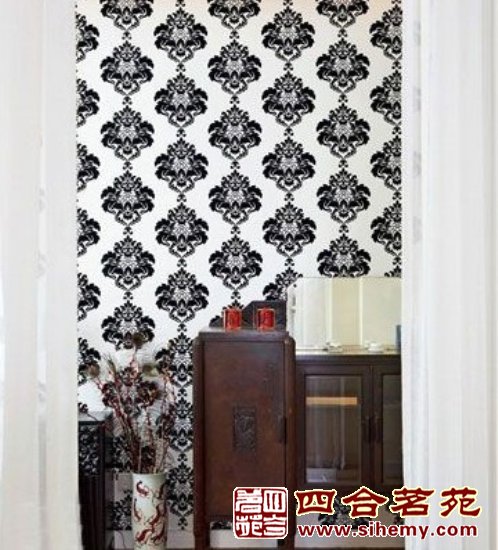 經(jīng)過(guò)改良的中式元素或者帶著華麗的色彩,或者有著閃亮的熒光效果,圖案也可能與往日傳統(tǒng)中式圖案有些不同,所以,我們可給中式風(fēng)格添加一些西洋味道。深色家具配單色墻面,常常會(huì)產(chǎn)生沉悶單調(diào)的感覺(jué),在現(xiàn)代圖案的壁紙襯托下,中式家具的沉重感蕩然無(wú)存,反而令整個(gè)空間有一種清新的感覺(jué)。