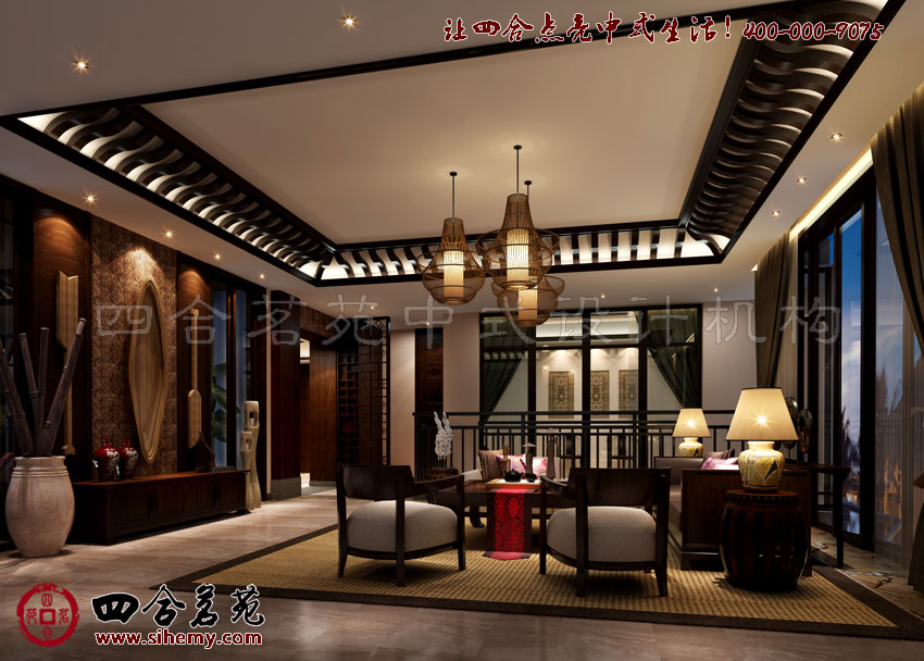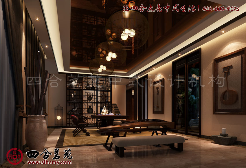 客廳,選用中式禪意風格裝飾,運用具有禪意的元素在空間中點染濃濃的古韻,而經典空間裝飾的運用也讓別墅整體在滿足功能的同時,也讓主題更加明確。