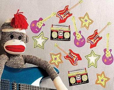 用各種樂器圖案裝飾音樂工作室的墻面再合適不過了,讓這些具有搖滾風格的墻貼點綴白色的墻面,豐富了視覺感的同時,也營造出活潑感十足的室內(nèi)空間。