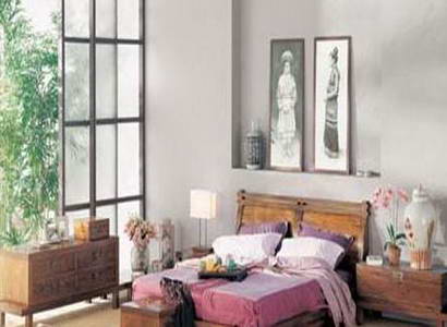 常見的中式床具是四柱帷幔的造型,床的頂部還有頂蓋。而這款經過簡化的中式床具更加富有現代感。床周圍的圈椅和瓷器軟裝,在整個中式風格中也起著重要的裝飾作用。