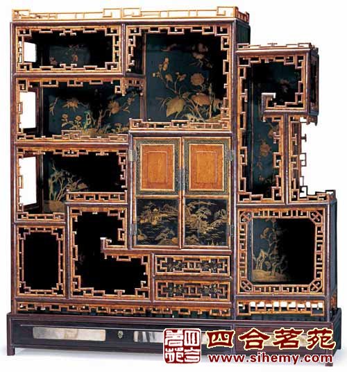 多寶格又稱“百寶格’或“博古”,是一種類似書架式的木器,中設 不同樣式的許多小格,格內陳設各種玩器物,是清代興起并十分流行的家具品種,被公認為是最富有清式風家具之一。清代由于滿漢達官貴 嗜好佩戴飾物、貯藏珍寶,所以制造了多寶格這種架式貯藏家具。多寶格兼有收藏、陳設的雙重作用,與一般純作箱、盒略有不同。之所以稱為“多寶 格”,是由于每一件珍寶,按其形制巨占有一“格”位置的緣故。客廳里—件多寶格可以增強觀賞效果。格的獨特之處在于,將格內做出橫豎不等、高低不齊、錯落參差的一個奎間,人們可以根據每格的面積大、和高度,擺放大小不同的陳設品。在效果上,它打破了橫豎連貫等極I律性的格調,因而開辟出新奇的意境來。多寶格形式繁多,各不類似。由于其制作精美,本身就是一件絕妙的工藝品。