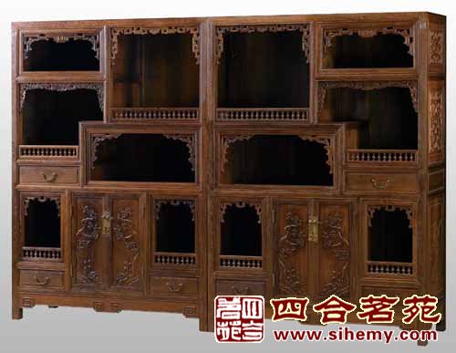 園無石不秀,室無格不雅。”這里所說的“格”就是多寶格。多寶格,又叫博I古架,也有萬寶格、百寶格之稱。從小小多寶格的演變過程可以看到中國古典家具的發展歷史。明代的家具圖錄中,沒有多寶格,但有書架和欄架格。書架和欄架格主要是裝書的,那時的書以線裝為主,一般都是平放。多寶格的造型古樸典雅夸,結構洗練大方生動,線條明快舒展。多寶格的“格”可多可少,尊一流暢。多寶格的“格”可多可少,可大可小,可方正可凸凹,錯落有致,落落大方,富于變化。它主要有兩大功能:一是具有室內裝飾功能,家里置一件多寶格,擺幾件古玩或工藝品百無疑會增加室內的文化韻味矽另一個功能是用它當隔斷,既有品位又實用。室內裝修不管是什么風格,擺一件多寶格,可以說是“點晴之筆”,能讓居享陡生典雅之氣。因此,近兩年家具引 場上多寶格成了熱銷的器物。